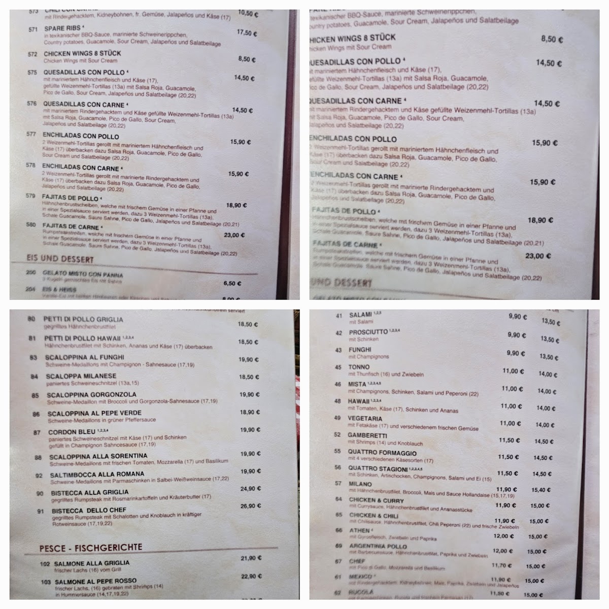 Beyond pizza, heartier main dishes such as Schweinemedaillons Mit Pfifferlingen and Lachs Mit Gegrilltem Gemüse show a thoughtful balance between meat and seafood, appealing to different preferences without overcomplicating the menu. Pasta lovers are not left out either, with Tonne E Cipolle offering a comforting, savory option that fits naturally alongside the rest of the offerings. For guests seeking international flair, Burrito adds an unexpected but welcome variation that broadens the overall appeal.