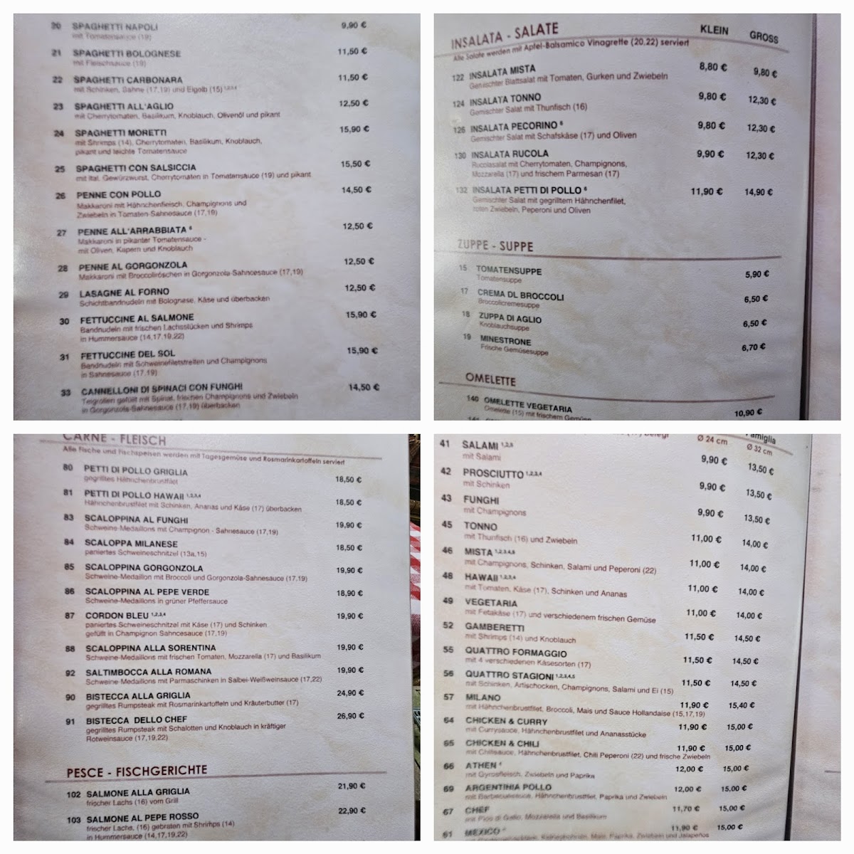 The beverage list complements the food well, ranging from classic refreshments like Bier to more expressive choices such as Mojito, Aperol Spritz, and Grappa, allowing diners to match their drinks to both casual meals and longer, relaxed evenings. To finish, desserts like Tiramisu and Creme Brûlèe provide a satisfying and familiar sweet ending that aligns perfectly with the restaurant’s approachable style. Overall, the menu feels cohesive and versatile, designed to please a wide audience while maintaining consistent quality and clear culinary identity.