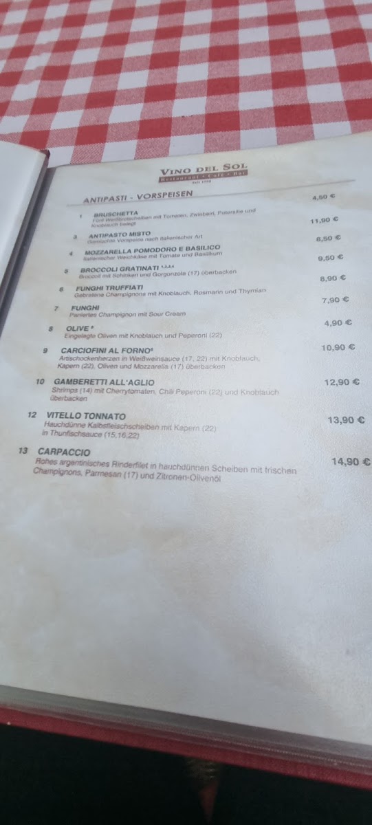 At Vino Del Sol, the menu comes together as a well-balanced reflection of a casual European dining experience with clear Italian influences and approachable comfort dishes. Starters like Bruschetta set the tone with simplicity and freshness, while lighter options such as Tonno Salat Klein add a clean, satisfying contrast for those looking for something less heavy. The pizza selection is clearly a core strength of the menu, offering variety in both size and flavor, from Kleine Pizza Salami and Pizza Mista Nr 46 to crowd-pleasing options like Pizza Spezial, Pizza Quattro Formaggi, Pizza Pfifferlinge, Große Pizza, and Pizza Mista Familia, making it easy to dine solo or share with a group.
